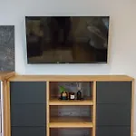 El interior, con una serie de comodidades como climatizador, también incluye una zona de estar. Este apartamento destaca por ofrecer comodidades como secador de pelo, toallas y zapatillas en el baño. Además, encontrarás una ducha a ras de suelo y un inodoro separado.